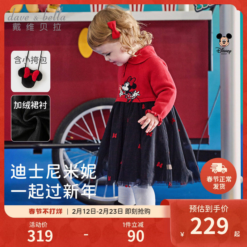 迪士尼IP戴维贝拉女童连衣裙春春装儿童加绒网纱裙宝宝新年裙子