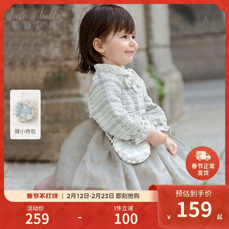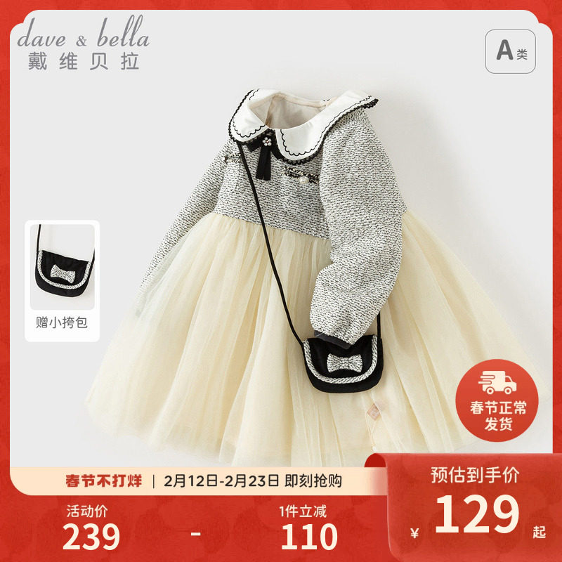 戴维贝拉女童连衣裙新款春装女宝宝小香风裙子儿童公主裙洋气童装