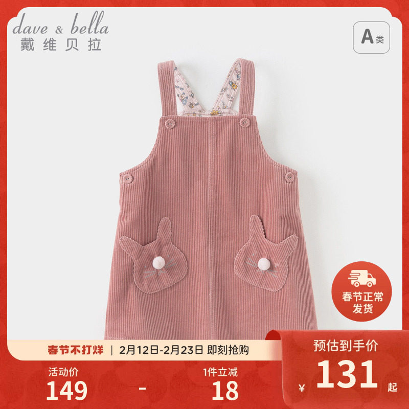 戴维贝拉儿童新款连衣裙2026女童纯棉灯芯绒背带裙女宝宝春装裙子
