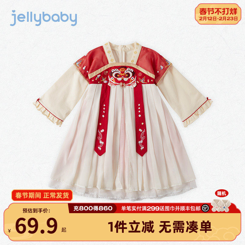 戴维贝拉儿童连衣裙2026新款女童国风汉服网纱裙女宝宝春装裙子