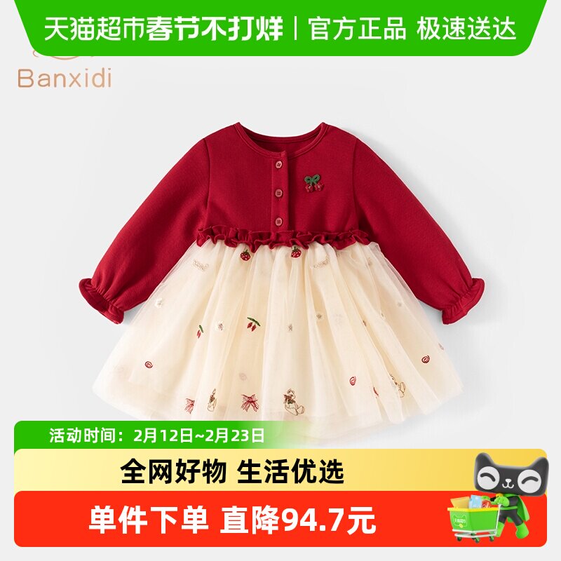 班喜迪女童连衣裙春装网纱裙子宝宝周岁礼服儿童公主裙过年拜年服