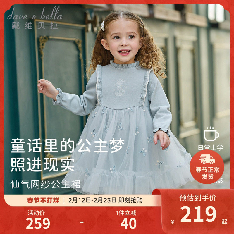 戴维贝拉女童毛衣连衣裙2026新款儿童春装礼服裙子宝宝网纱公主裙