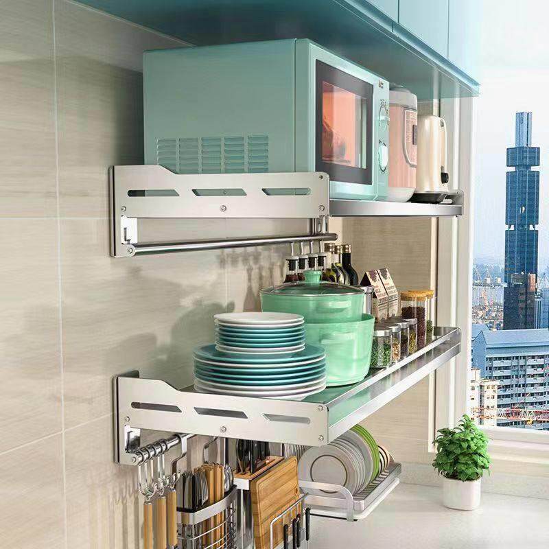 304不锈钢厨房置物架微波炉架壁挂烤箱电饭锅收纳多层墙上家居