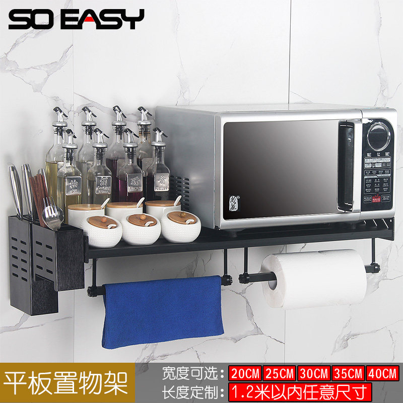 不锈钢厨房置物架长100/1110/120免打孔壁挂微波炉架宽25/30/35cm