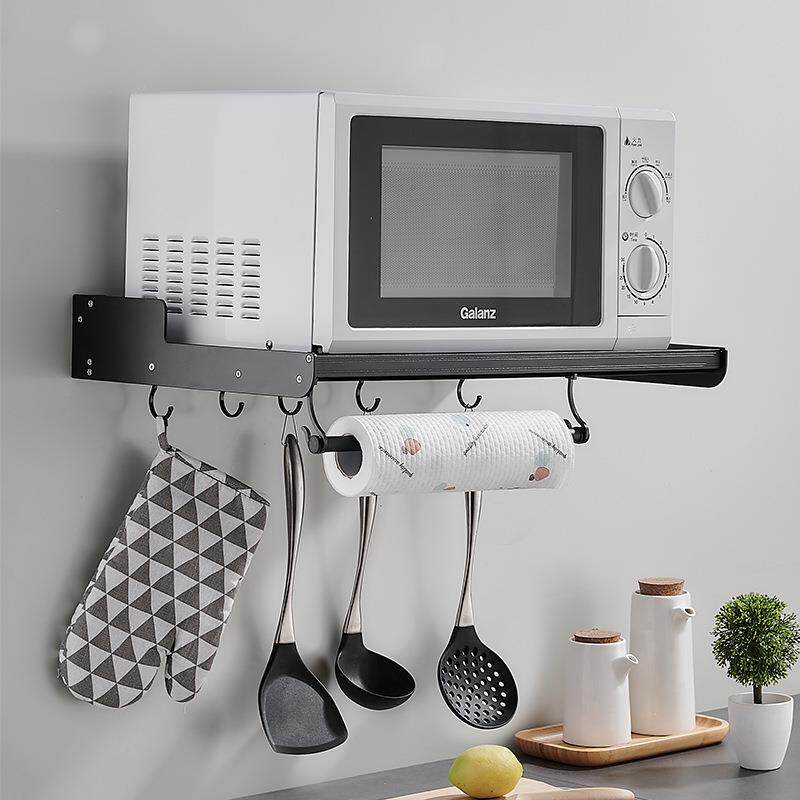 太空铝微波炉架子厨房置物架黑色壁挂式烤箱挂墙上用品收纳架支架