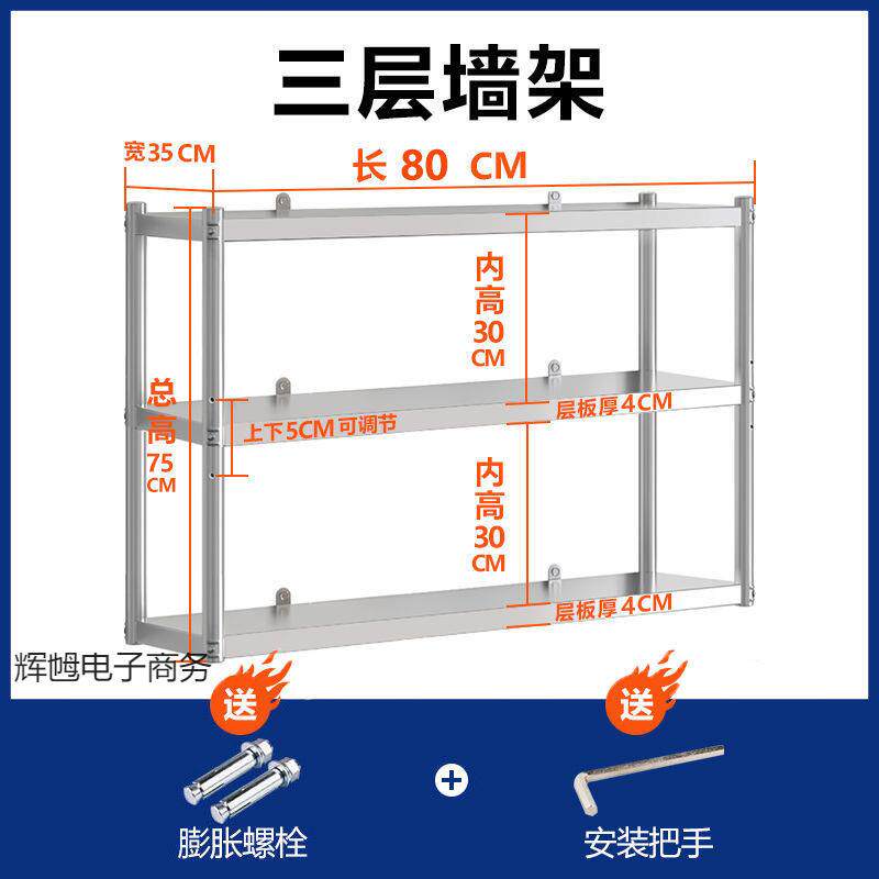 厨房不锈钢挂墙上置物架3层吊柜墙壁挂微波炉架子饭店货架储物2层