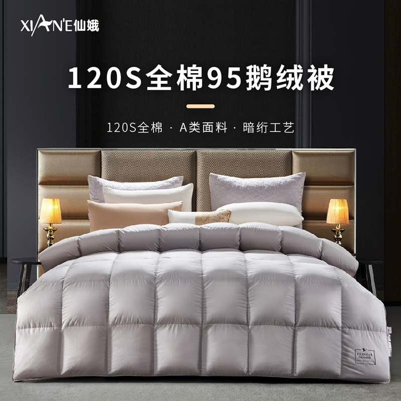 仙娥120支全棉羽绒被95白鹅绒被芯加厚保暖冬被双人春秋被子冬季