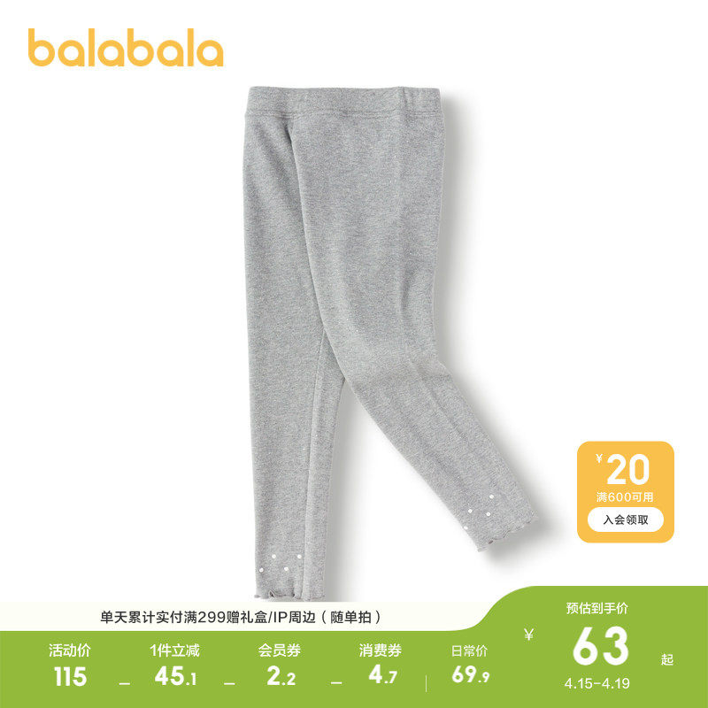 巴拉巴拉童装儿童打底裤女童2026春装休闲小童大童纯色弹力长裤子