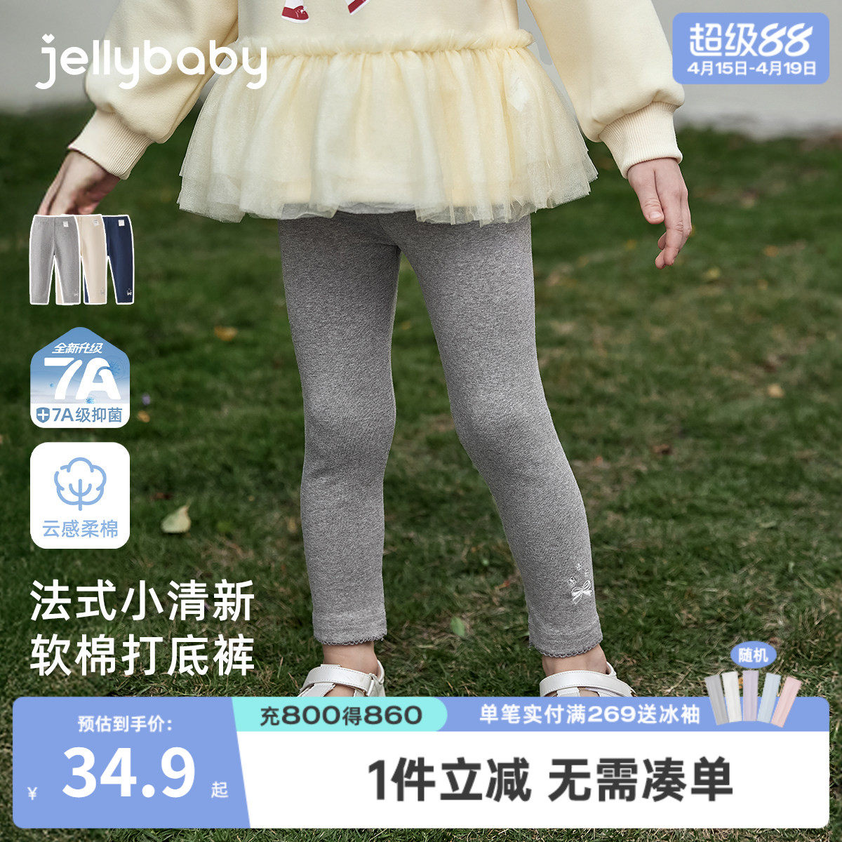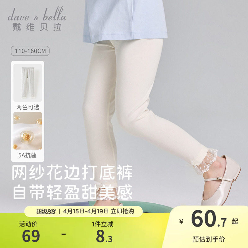 戴维贝拉儿童裤子2026夏装新款女童中大童5A抗菌纯棉打底裤紧身裤