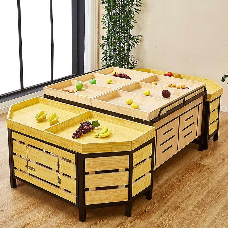 木质超市货架水果架子便利店蔬菜展示架果蔬展示架商用中岛展示柜