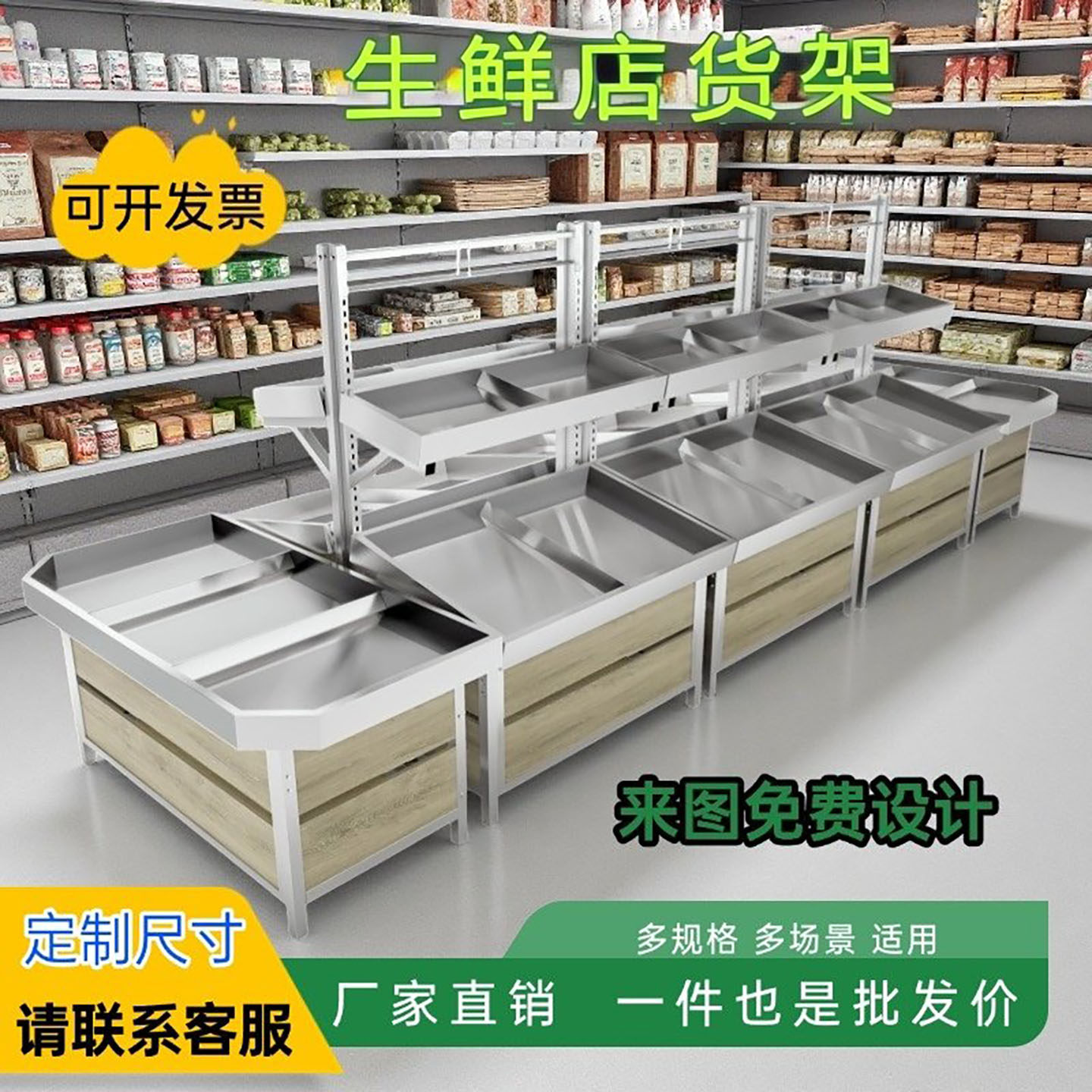 生鲜店货架果蔬架蔬菜堆头不锈钢果蔬架多层水果架展示架蔬菜货架