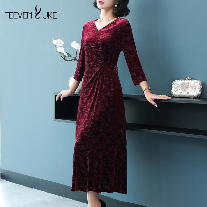 气质金丝绒年轻妈妈连衣裙女2021秋季新款喜婆婆婚宴礼服高贵显瘦