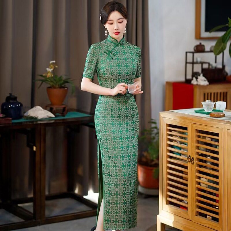 走秀长旗袍2025年春夏新款年轻优雅连衣裙中年女妈妈演出服中国风