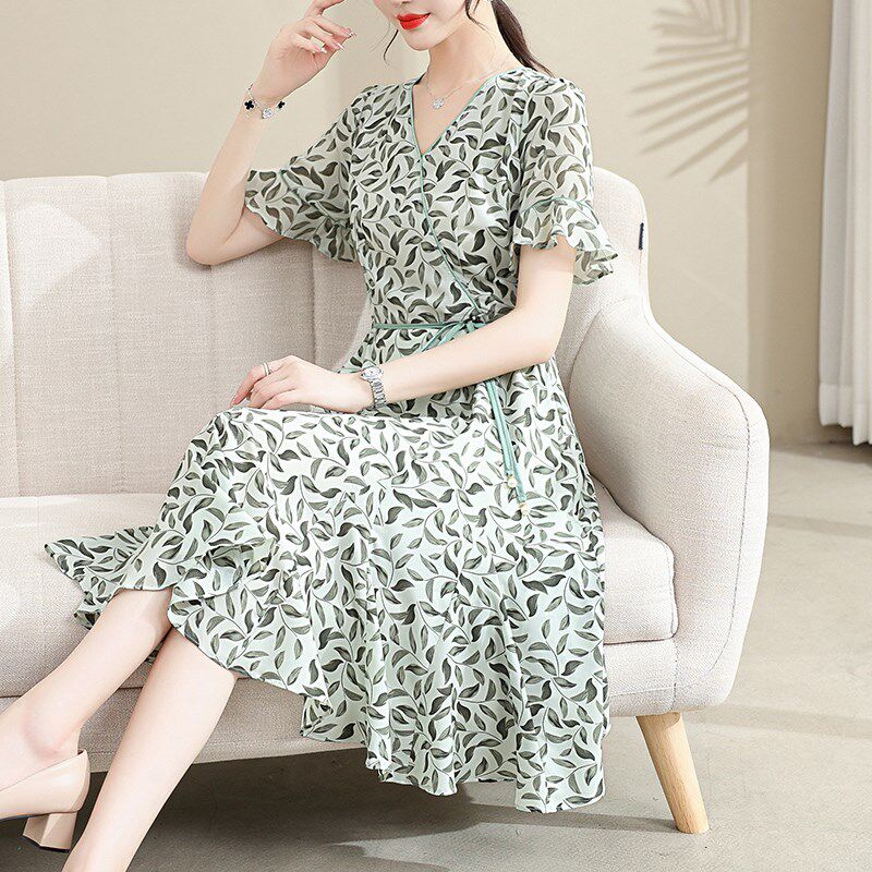 速发年轻妈妈连衣裙2园25夏季新款田0龄花洋气减碎设计感中长款裙