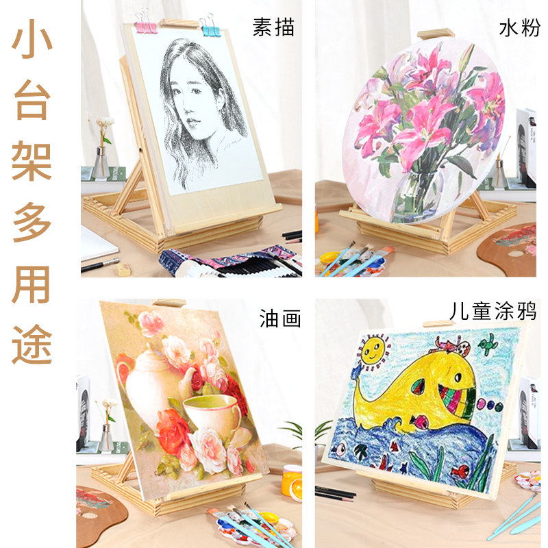 桌面台式画架美术生专用画板桌上儿童支架式可折叠素描数字油画画架4k绘画初学者8K可折叠调节升降实木画架