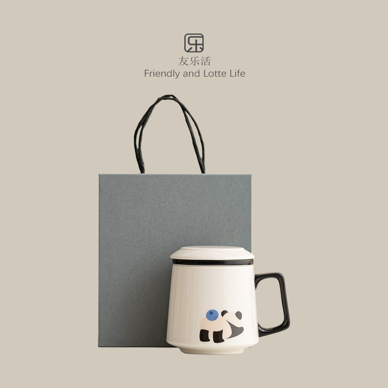 熊猫茶水分离杯卡通可爱办公室水杯花茶杯高校企业年会活动纪念品
