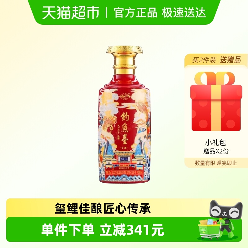钓鱼台玺鲤酒53度酱香型白酒单瓶500ml升学宴回礼办酒席喜宴婚宴