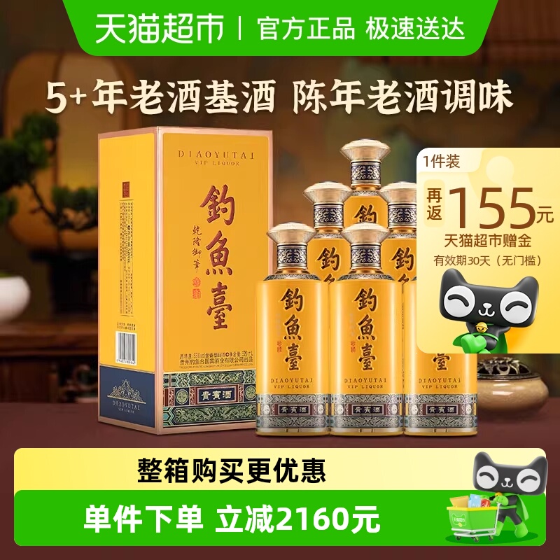 钓鱼台贵宾酒(第二代)酱香型白酒53度500ml*6瓶整箱装送礼粮食酒