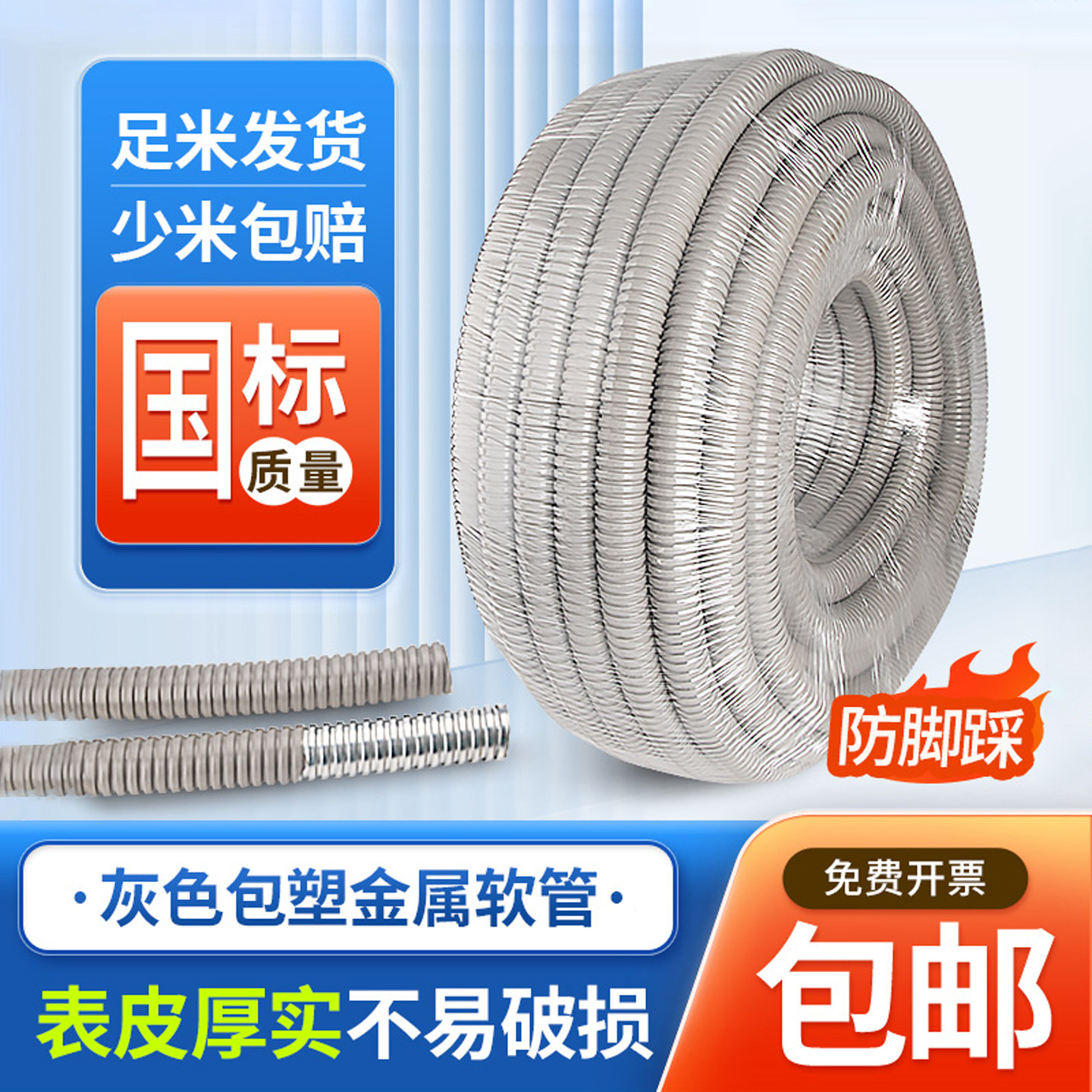 • 灰色包塑金属软管企标穿线管波纹管蛇皮管电线电缆保护套管阻燃管