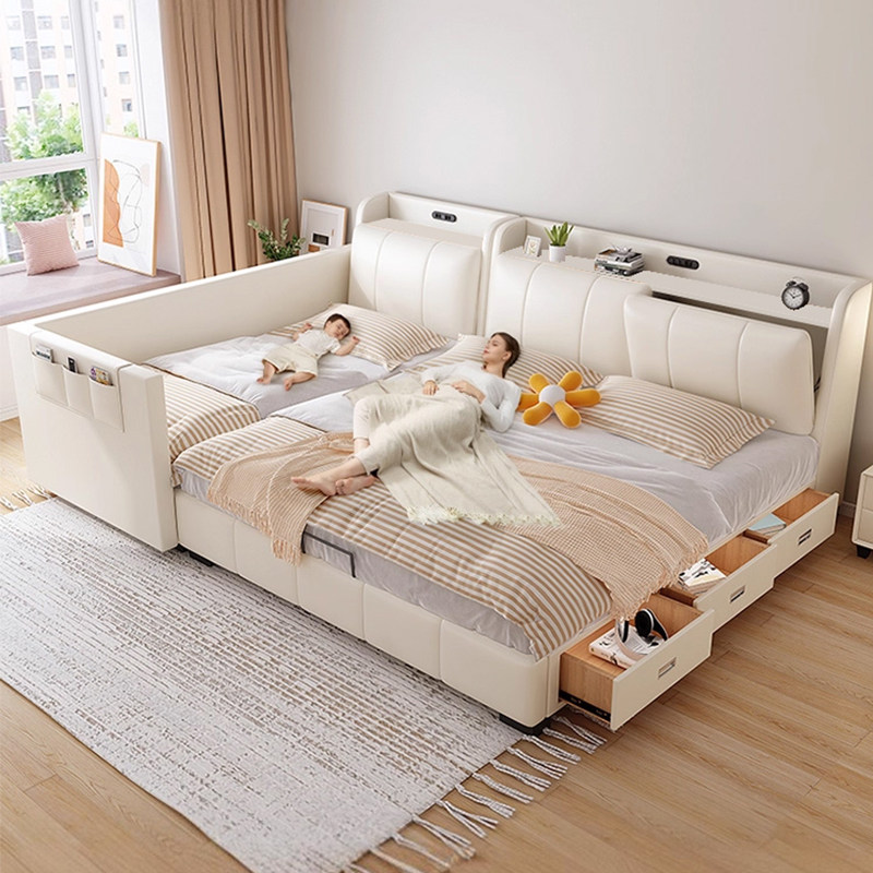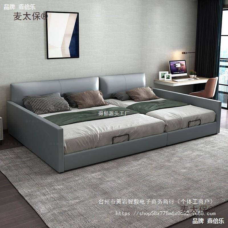 二胎亲子床家庭一家四口拼接真皮床主卧现代简约榻榻米护栏超大床