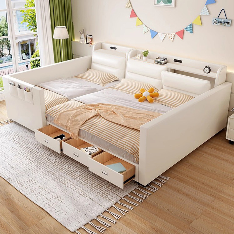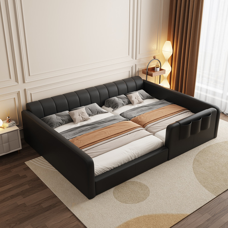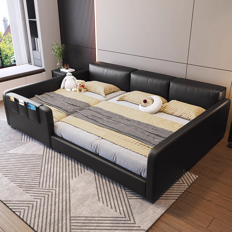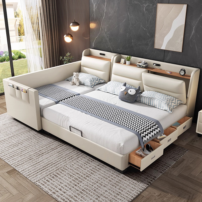 意式极简加大二胎亲子床一家四口拼接床加宽可分可合榻榻米真皮床