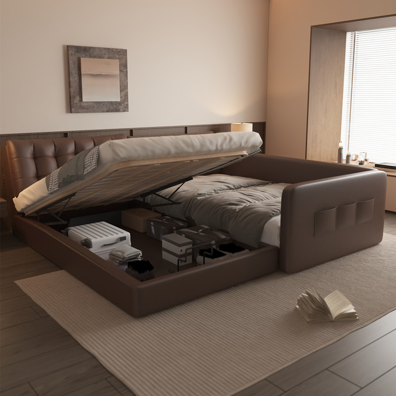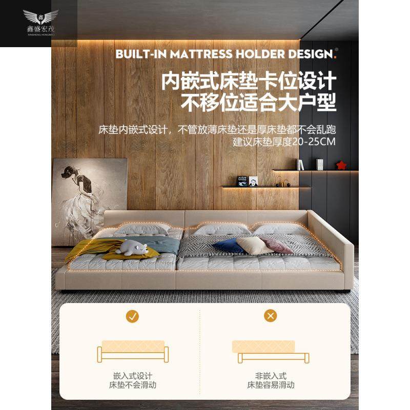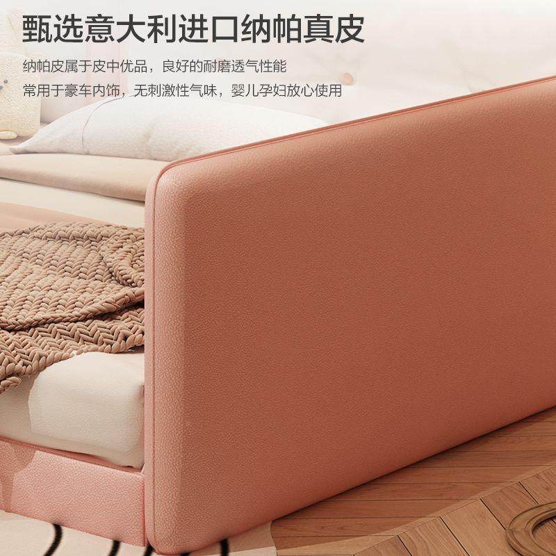 北欧二胎亲子床榻榻米真皮床简约现代2.2×2.4米大床双人主卧皮床