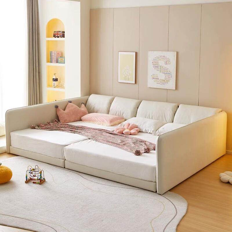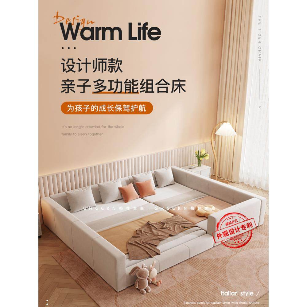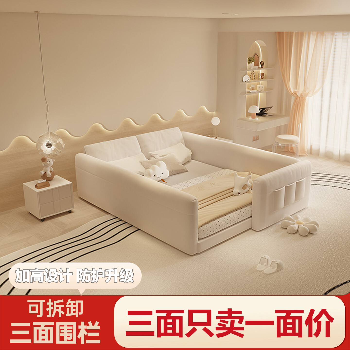 亲子床二胎家庭一家三四口超大床3米子母拼接床奶油风泡芙真皮床