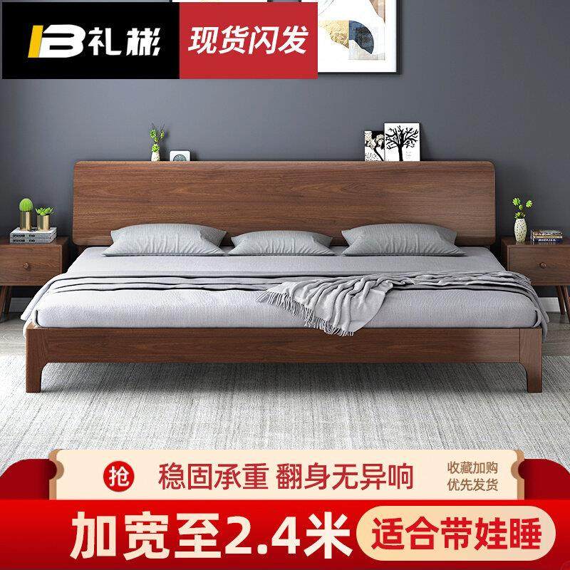 现代简约2米双人床实木床二胎家庭亲子床加大三四人2.4米床加宽床