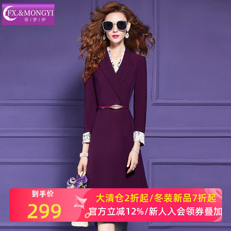菲梦伊原创紫色西装连衣裙女秋季新款设计感通勤时尚气质职业裙子