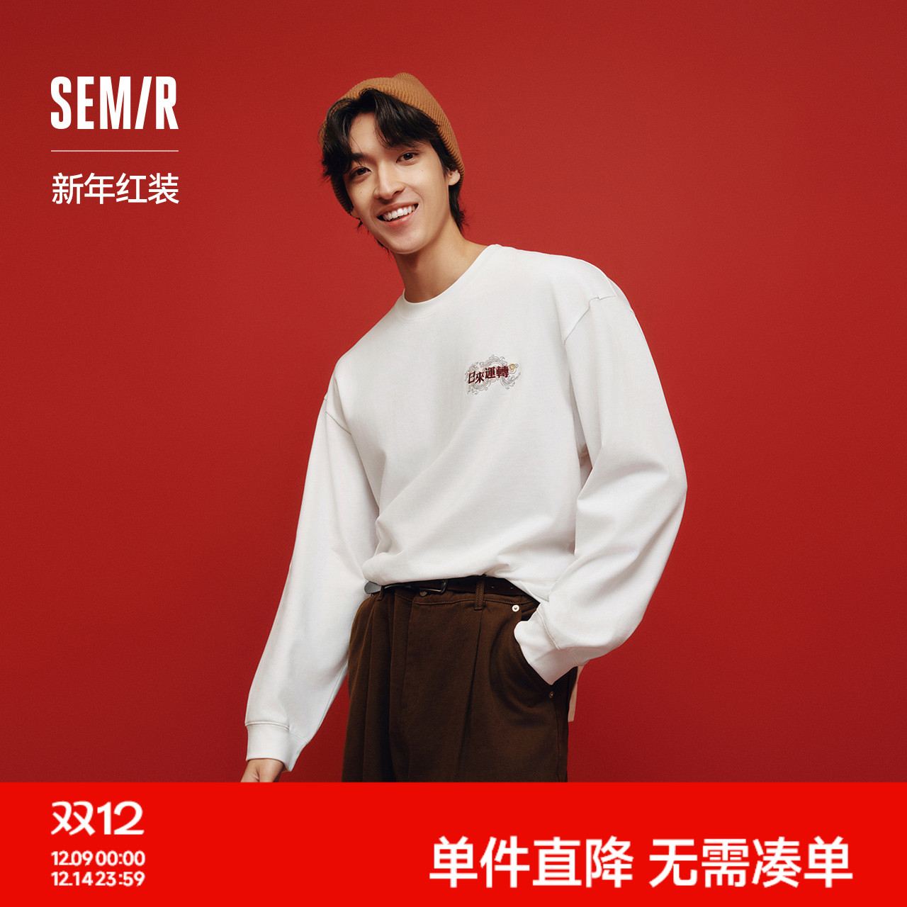 森马长袖T恤男纯棉打底衫情侣内搭2025春季新款绣花针织上衣宽松
