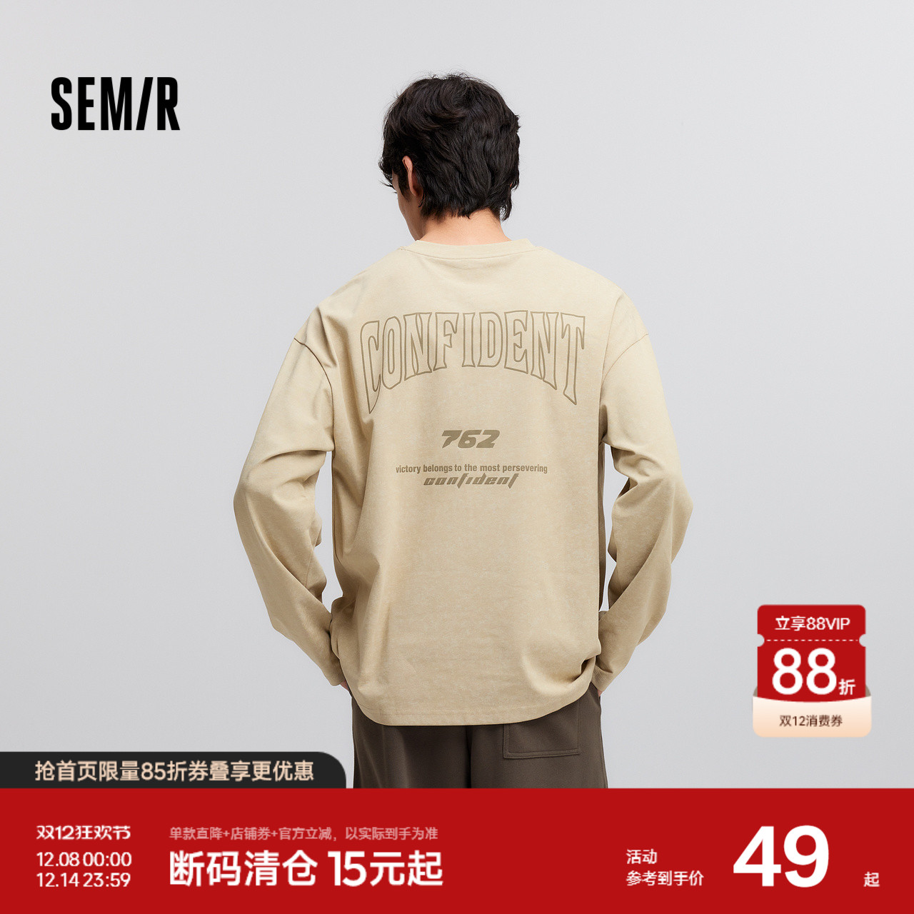 森马长袖T恤男美式复古印花打底衫春季内搭宽松针织上衣刺绣潮流