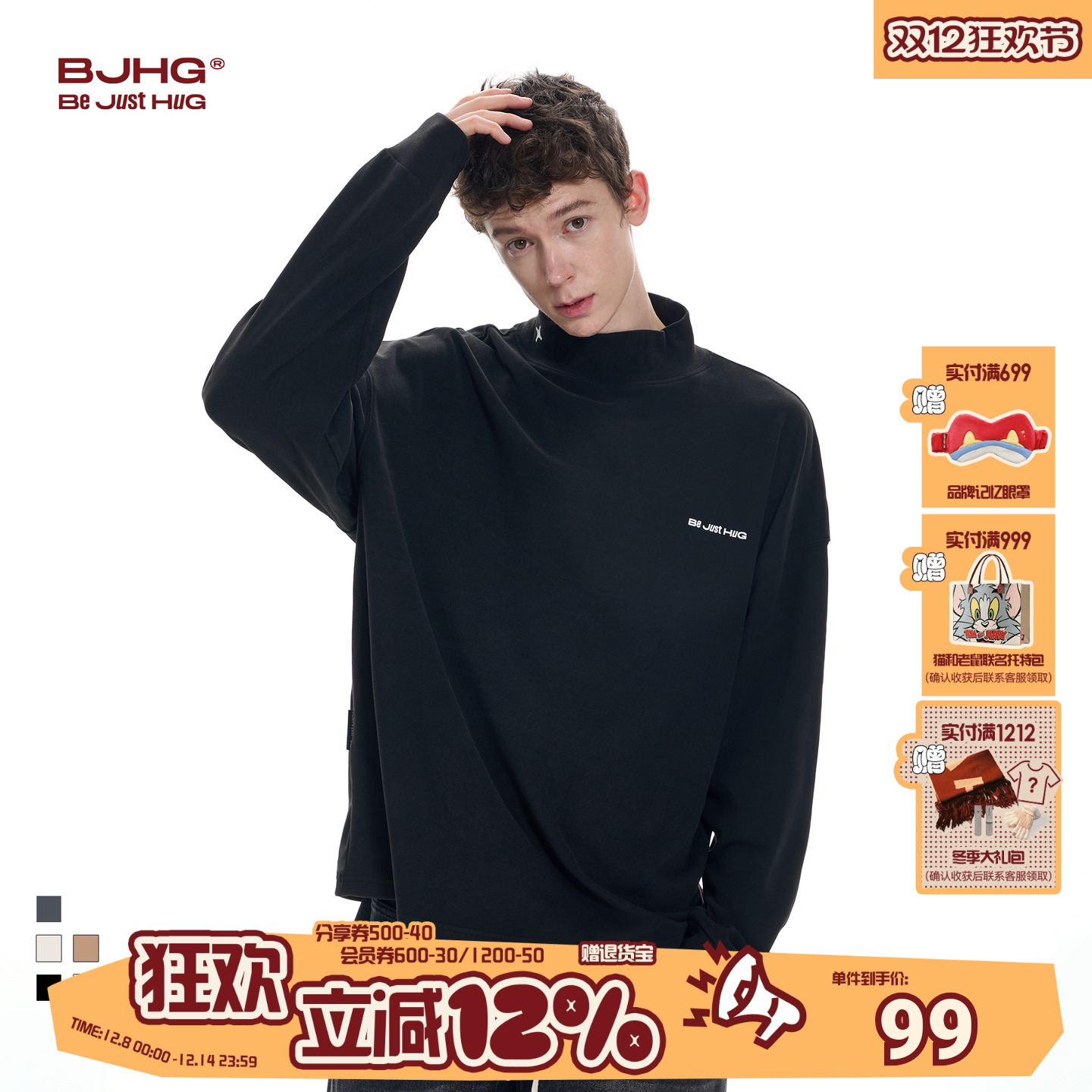 BJHG不计后果长袖T恤男款冬季舒绒半高领打底衫潮牌内搭针织衫女