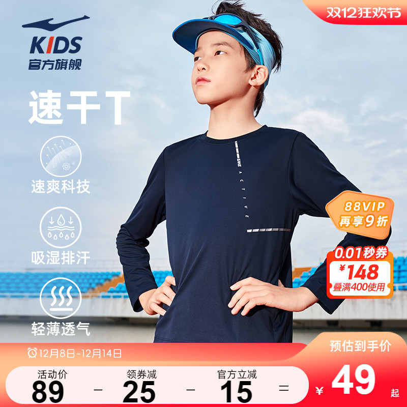 鸿星尔克童装男童圆领长袖t恤春秋季中大童运动速干衣打底针织衫