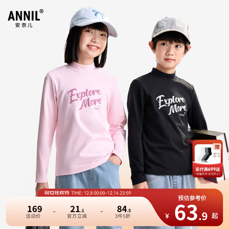安奈儿童装男童女童中领长袖T恤针织衫2025秋季新款弹力打底衫