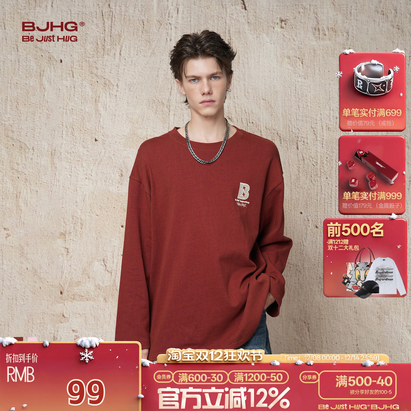 BJHG不计后果 美式圆领长袖t恤男款秋冬季内搭卫衣纯棉针织打底衫