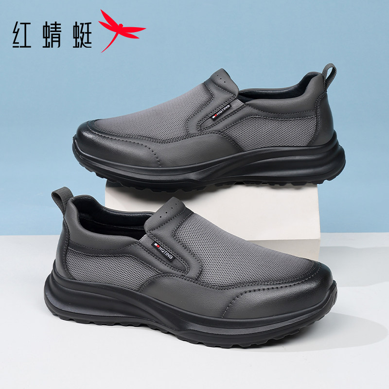 红蜻蜓2026春夏季爸爸鞋网面透气皮面织物休闲运动皮鞋防臭轻便软