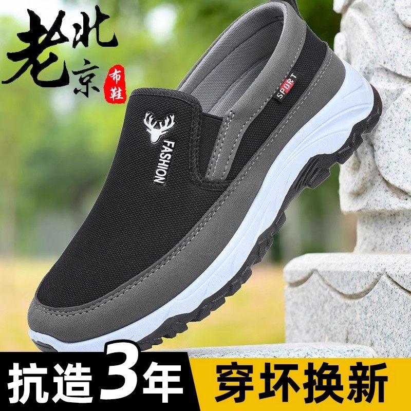 2025春夏季新款老北京布鞋男鞋运动休闲鞋透气爸爸鞋一脚蹬老人鞋