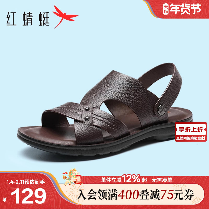 红蜻蜓男士凉鞋夏季男鞋外穿凉拖中老年软底凉皮鞋真皮大码爸爸鞋
