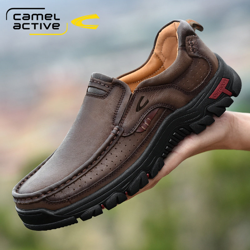 德国骆驼动感春秋季真皮商务休闲鞋男士套脚一脚蹬鞋子夏季爸爸鞋