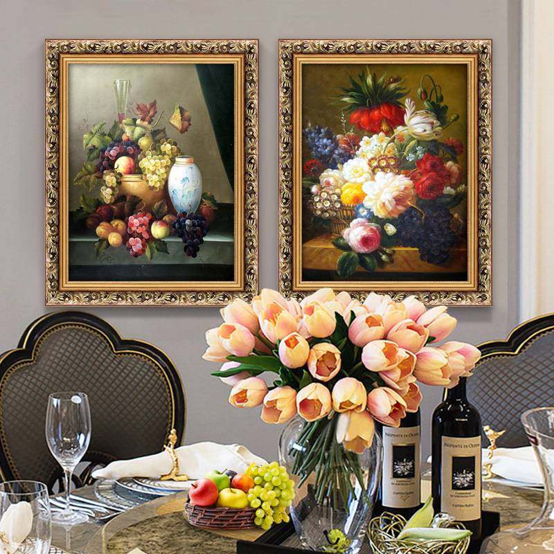 轻奢简欧风格餐厅背景墙装饰画高端大气饭厅挂画新款书房花卉壁画