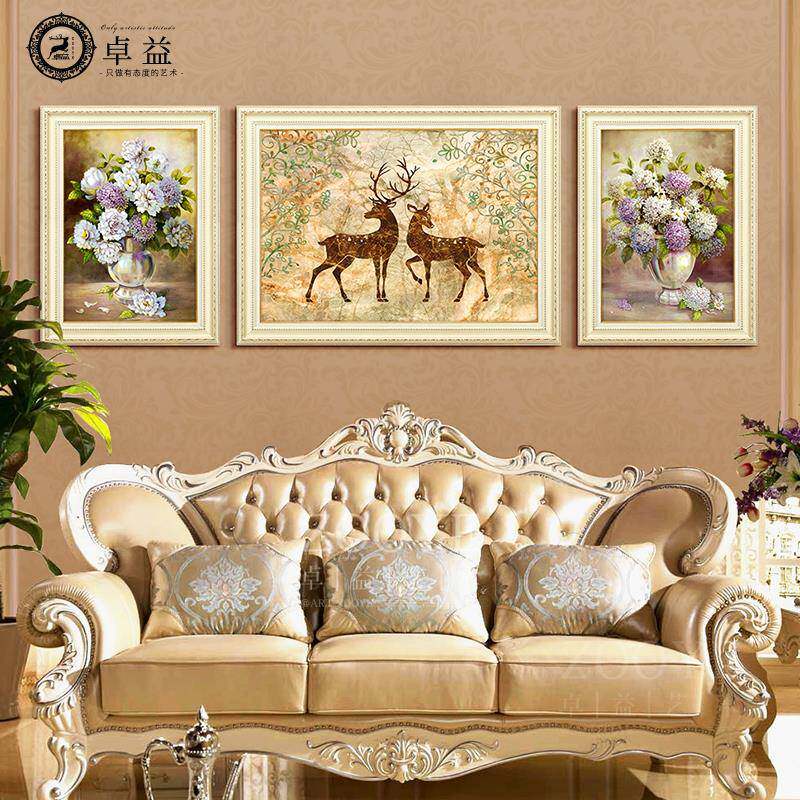 欧式客厅装饰画简欧轻奢沙发背景墙大气三联挂画美式麋鹿餐厅壁画