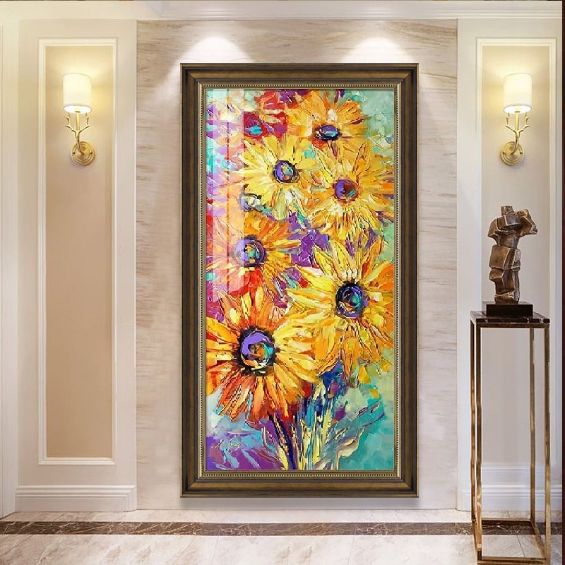向日葵玄关装饰画竖版过道走廊尽头挂画油画简欧客厅背景美式壁画