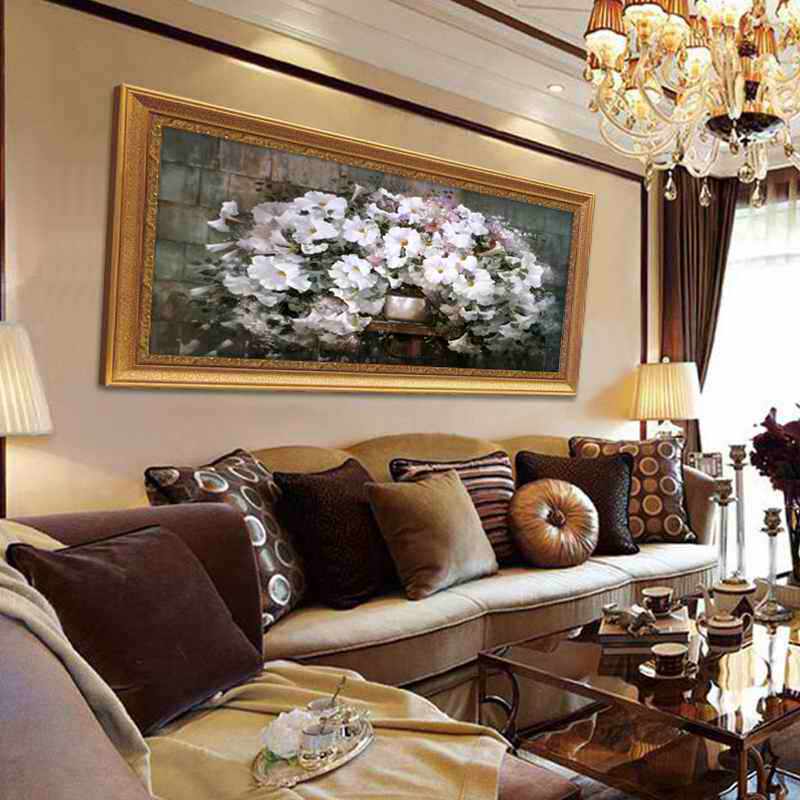 简欧客厅壁画现代挂画油画欧式卧室装饰画床头画横幅花开富贵牡丹