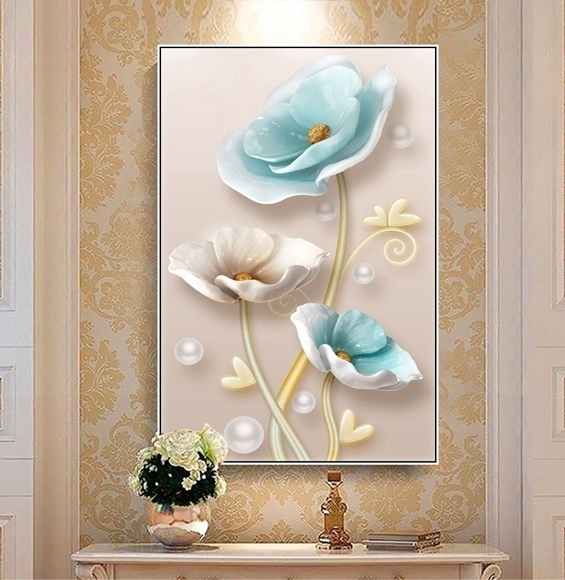 欧式玄关装饰画楼梯间花卉墙画现代简欧过道走廊竖版挂画大气壁画