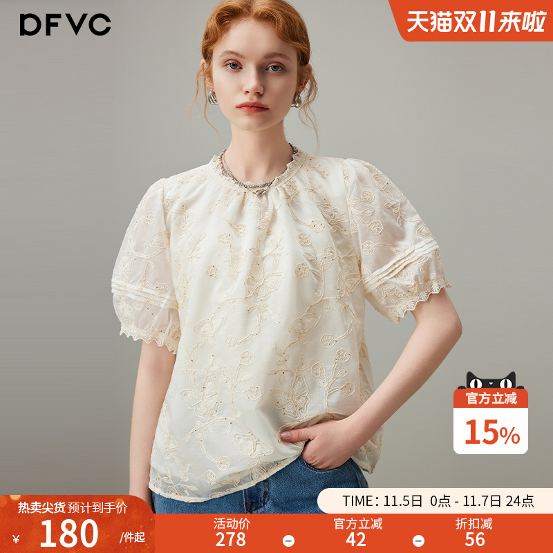 dfvc莱赛尔天丝法式泡泡袖衬衫女2025年夏季新款重工绣花宽松上衣