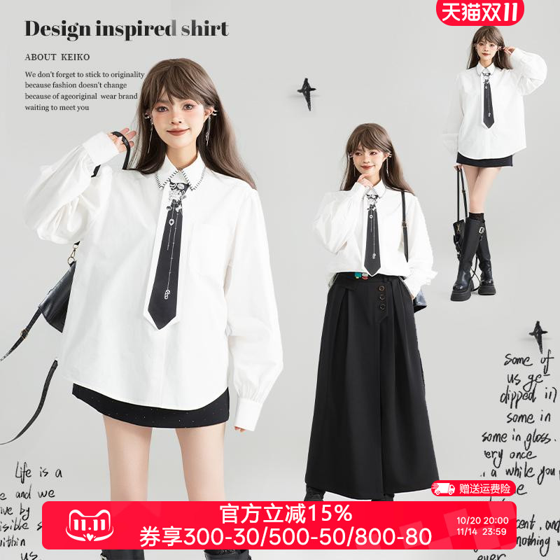 KEIKO 萌兔绣花廓形长袖衬衫女25秋季可爱减龄泡泡袖上衣薄款外套