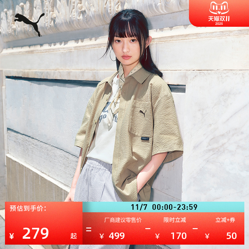 复古泡泡纱短袖衬衫Polo衫男女情侣款PUMA彪马刺绣运动上衣634794