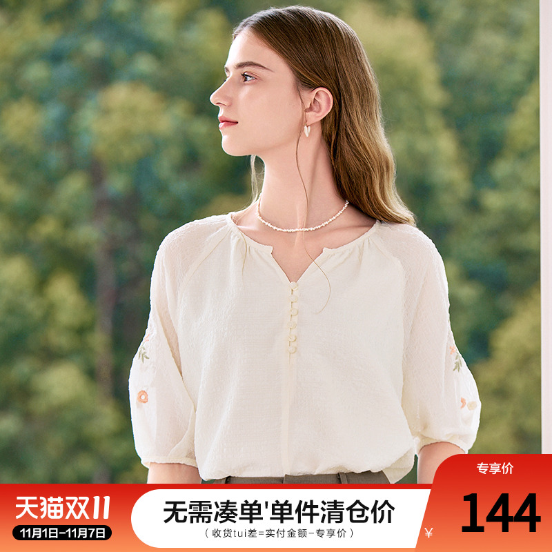 刺绣泡泡袖衬衫女[第6名]