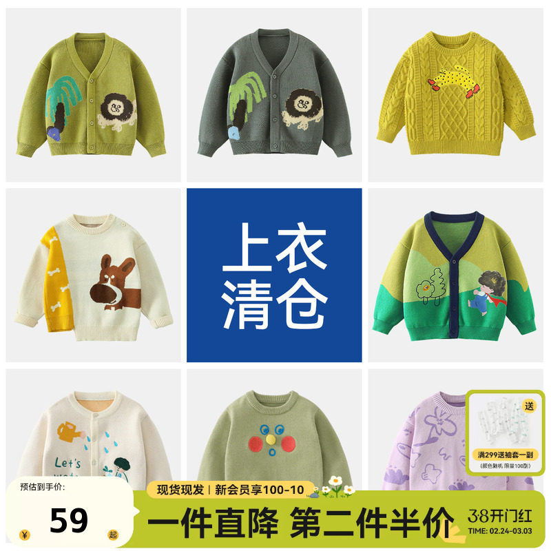 嘟嘟家男童毛衣儿童开衫外套女童毛线上衣宝宝春装2026新款针织衫