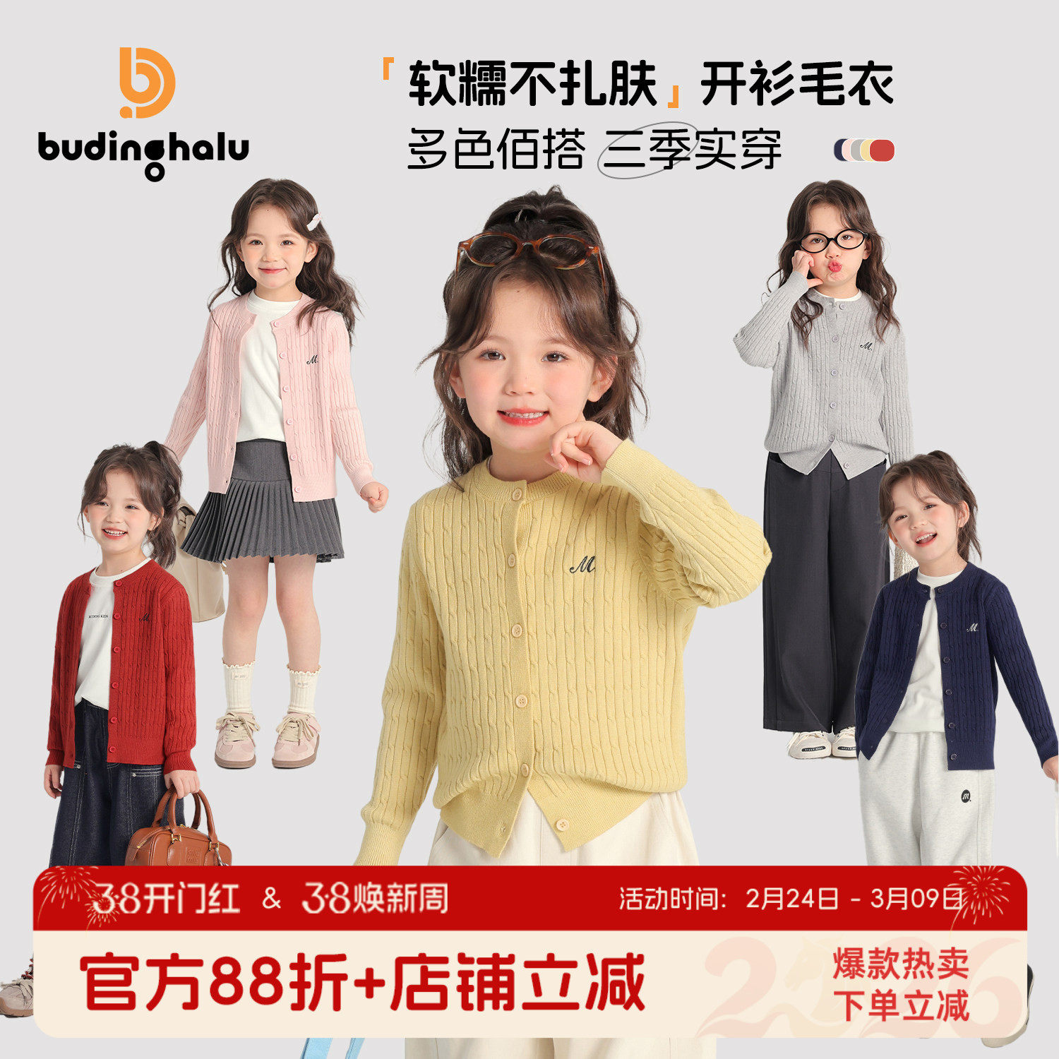 布丁哈鲁童装春装女童洋气上衣2026新款儿童休闲针织毛衣外套春秋